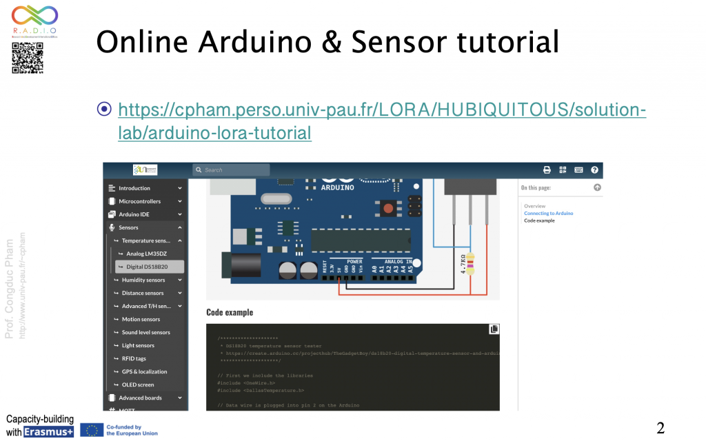 Feb. 3rd, 2026. To prepare the Train-of-the-Trainers event that will take place at UPPA in July 2026, training and capacity-building materials are produced to illustrate how the Generic Sensor Platform, initially developed in the PRIMA INTEL-IRRIS project and now deployed and exploited in the AgriFutur project, can be used to build cost-efficient IoT devices for a large variety of application domains. In addition to these tutorial materials, participants will learn and practice using the online tutorial platform on Arduino, Sensors and IoT that has been developed by University of Pau for teaching purposes.
