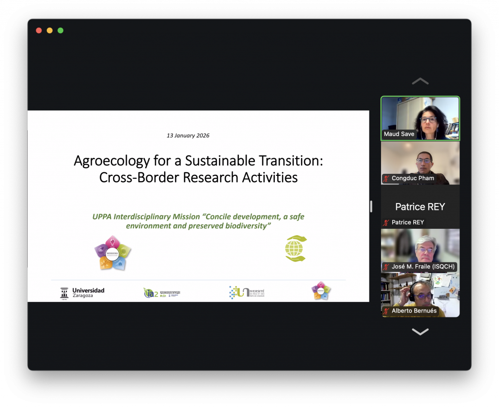 Jan. 13th, 2026. Prof. Congduc Pham presented UPPA’s activities on cost-effective, wireless sensors platforms for agroecology monitoring at the UNIZAR (Spain)–UPPA (France) Webinar on “Agroecology for a Sustainable Transition: Cross-Border Research Activities”. It was a great opportunity to get to know all these projects, initiatives and activities. Get the slides in .pdf.